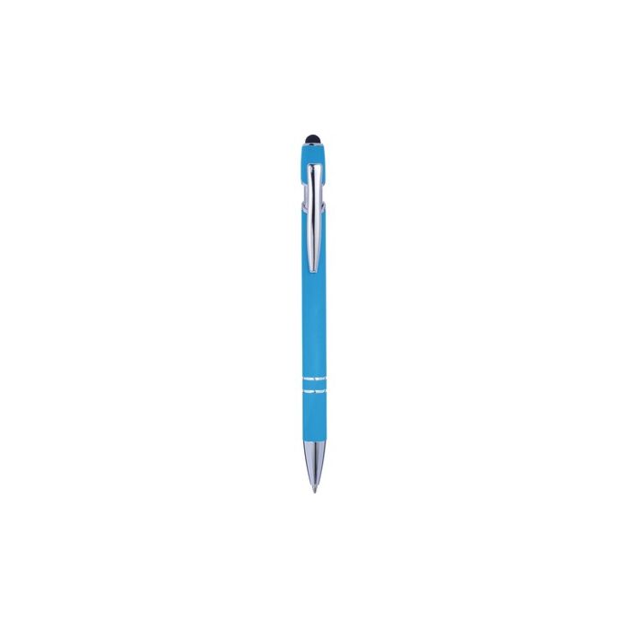 Długopis, touch pen, kolorowy gumowany trzon i srebrne elementy