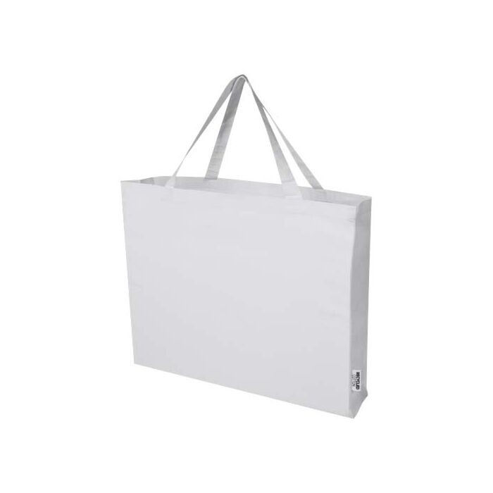 Odessa duża torba na zakupy wykonana w 100% z bawełny pochodzącej z recyklingu z certyfikatem GRS została zaprojektowana z myślą o wygodnym noszeniu dzięki uchwytom na ramię o długości 30 cm i dużej komorze głównej z płaskim dnem. Niezależnie od tego, czy chcesz nosić ciężkie książki, czy artykuły spożywcze, ta torba została zaprojektowana tak, aby zaspokoić wszystkie potrzeby. Metody nadruku dostępne dla tej torby na zakupy również posiadają certyfikat, dzięki czemu cały łańcuch dostaw jest przejrzysty i certyfikowany. Mieszanka bawełny o gramaturze 220 g/m² zapewnia trwałość i niezawodność, dzięki czemu torba wytrzymuje obciążenie do 10 kg. Wyprodukowano w Indiach.