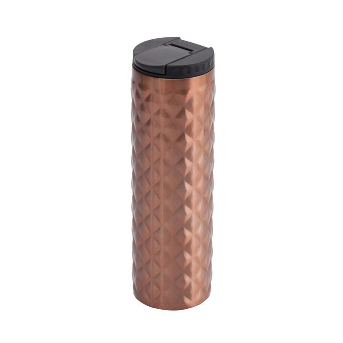 Szczelny kubek izotermiczny - termos o pojemności 450 ml wykonany ze stali nierdzewnej pokrytej lakierem. Oryginalna pikowana powierzchnia. Wewnętrzna ścianka wykonana ze stali o podwyższonej jakości 18/8. Próżnia pomiędzy ściankami zapewnia bardzo dobre właściwości termoizolacyjne. Szczelne zamknięcie - leak proof zapobiega wyciekaniu płynów. Zamknięcie typu flip up sip. Utrzymuje ciepło do 8 godzin.